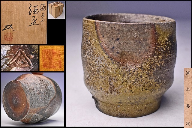 > 浦上善次 ★ 備前ぐい呑 ★ 共箱 共布 栞 ★ 師: 西村春湖 / 彫刻家 北村西望 ★ 造形良く景色抜群の上作 ★