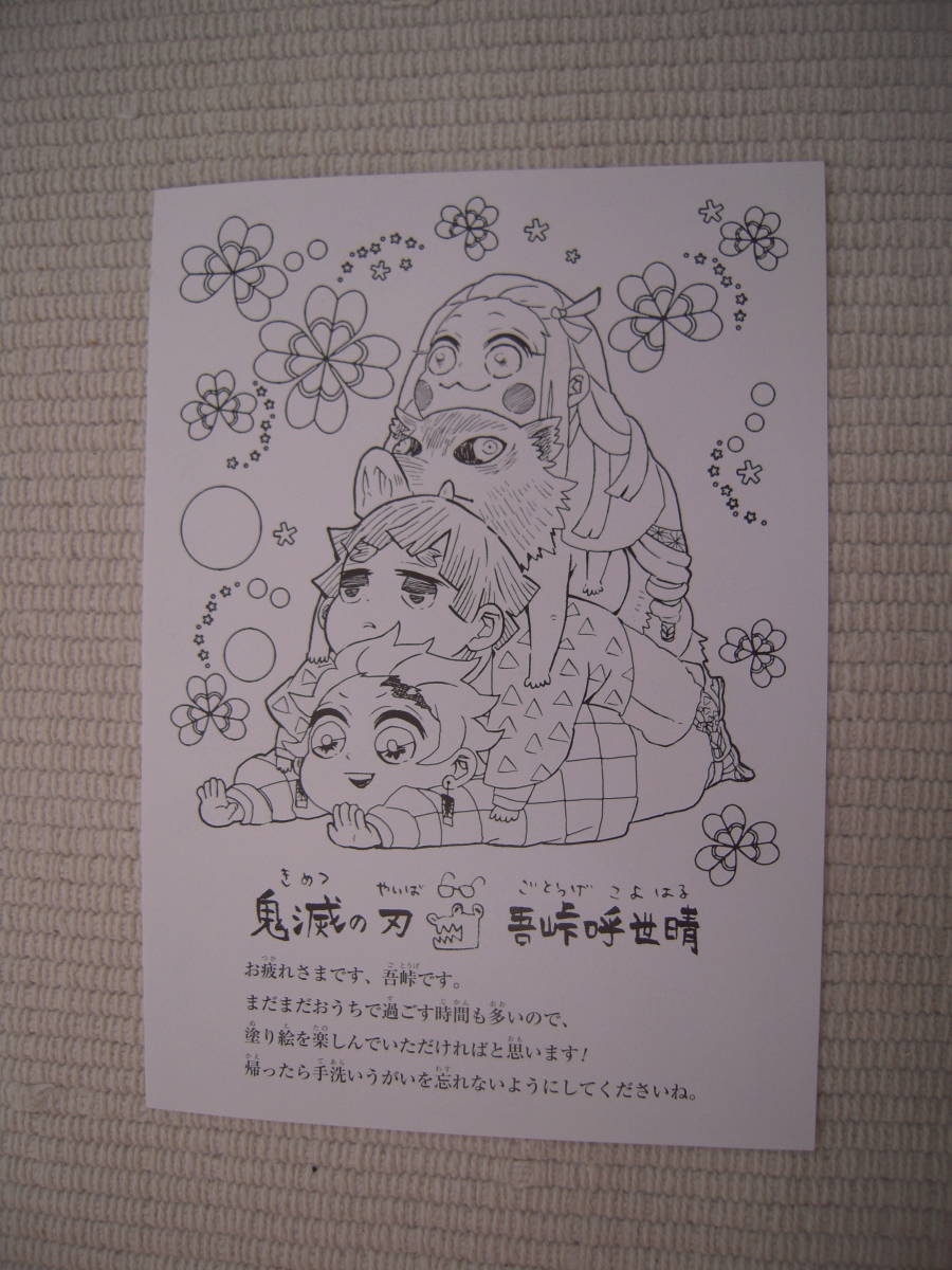 - ☆劇場版 鬼滅の刃 無限列車編 入場者特典 吾峠呼世晴先生イラスト特製ぬり絵 竈門炭治郎&竈門禰豆子&我妻善逸&嘴平伊之助 中古☆