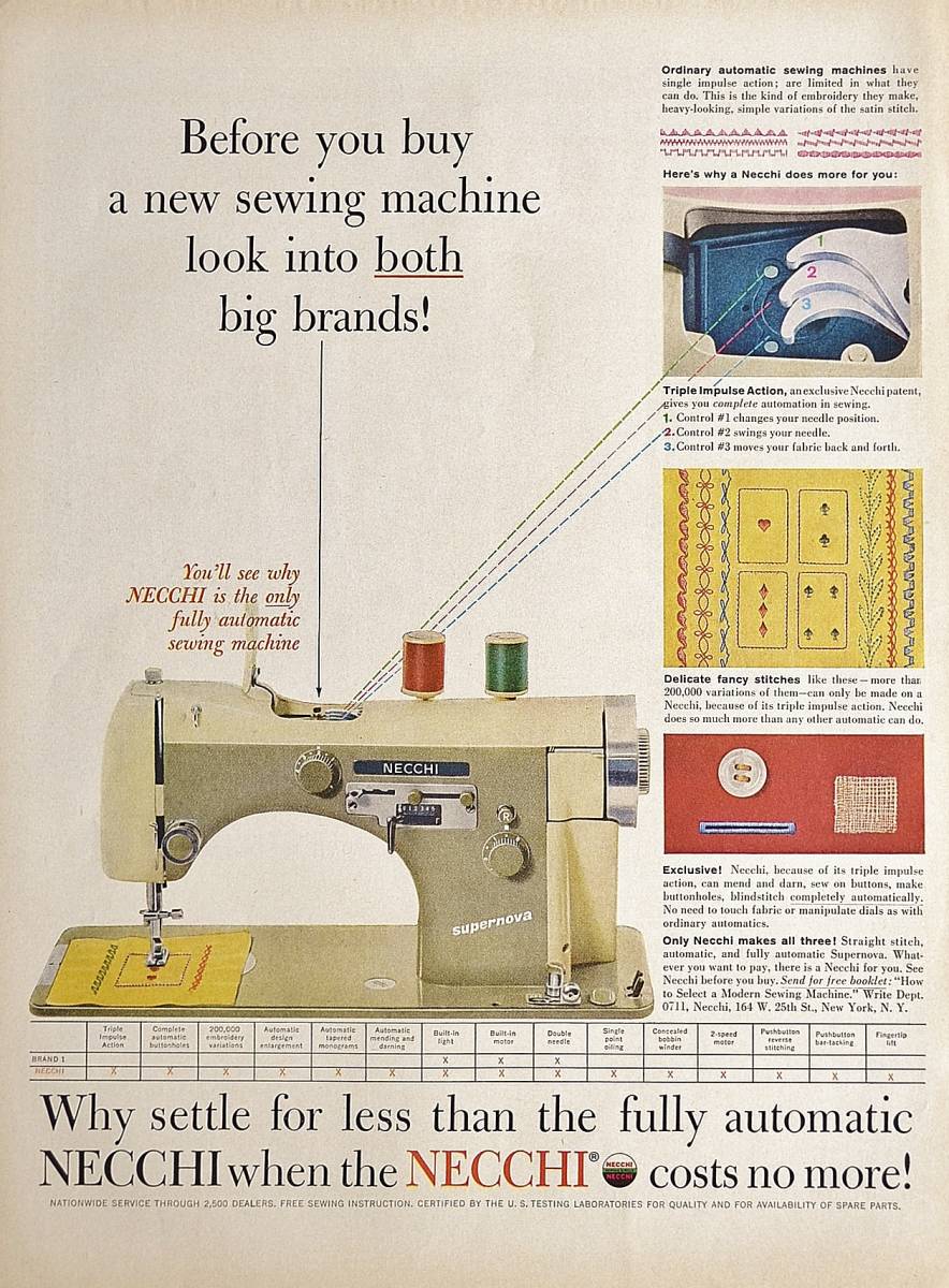 - 稀少!1957年Necchi Sewing Machine広告/ミシン/電化製品/T