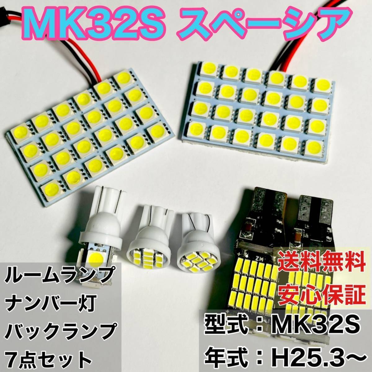 > MK32S スペーシア T10 LED ルームランプセット+ナンバー灯+バックランプ ウェッジ球 ホワイト 7個セット スズキ