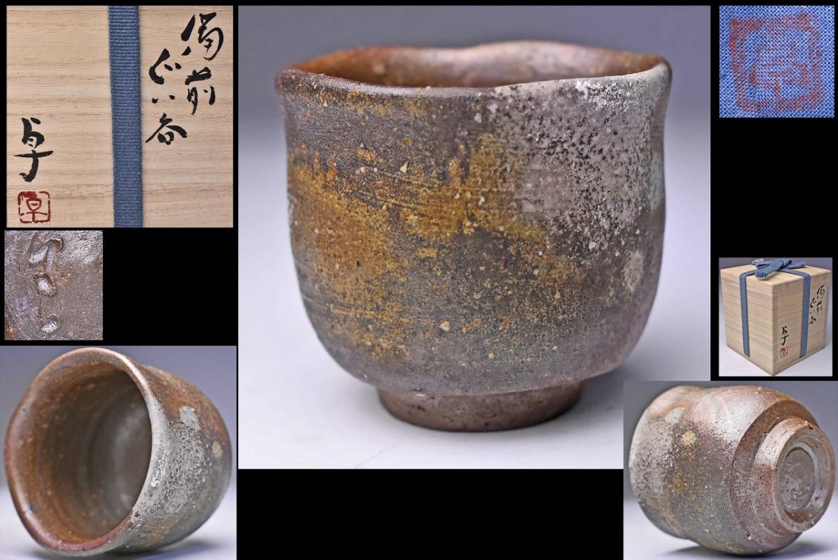 - 伊勢崎 卓 ★ 備前 ぐい呑 ★ 共箱 共布 ★父: 伊勢崎満 ★検 人間国宝 伊勢崎淳 伊勢崎陽山 伊勢崎創 伊勢崎競 伊勢崎紳