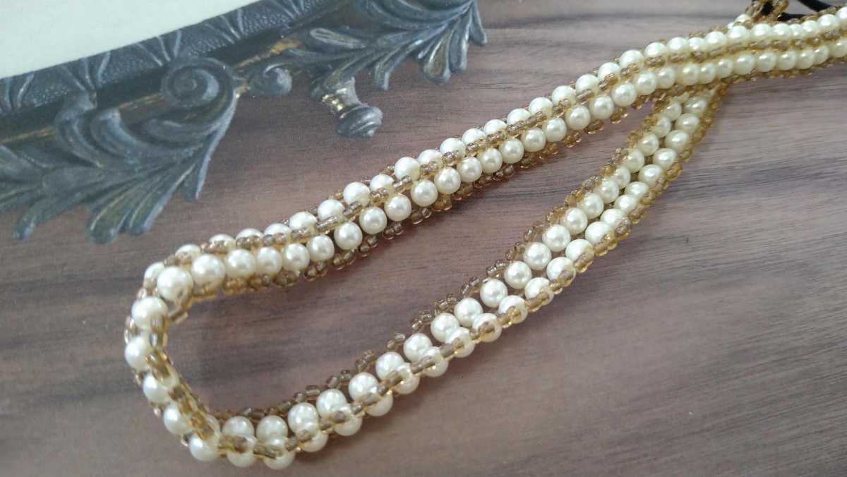 - □訳あり□パール&ブラウンビーズ・カチューシャ□