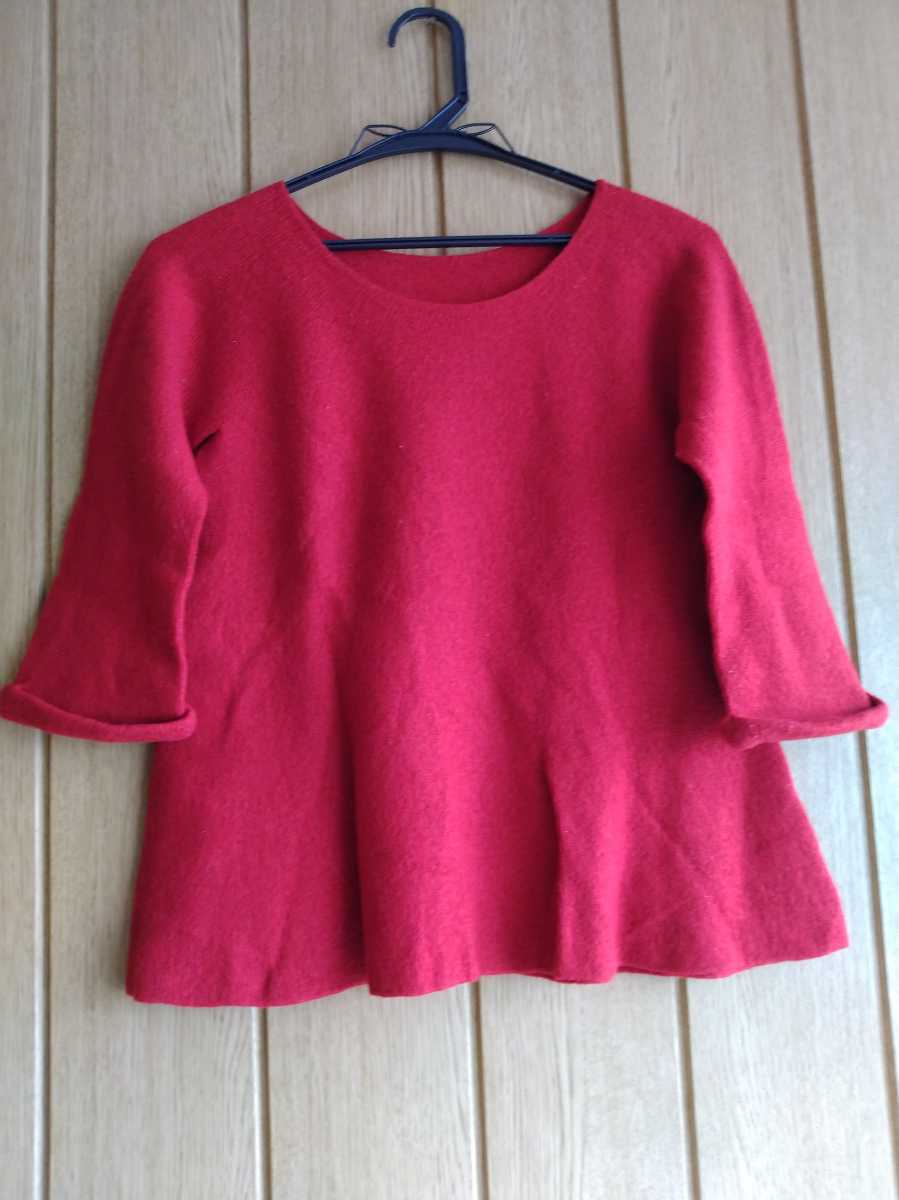 > 中古 style Note レッド セーター ニット 着丈 約48cm バスト 72~87 身長 154~162 S~M 毛 100% 袖丈 約26.5cm(脇下から計測)
