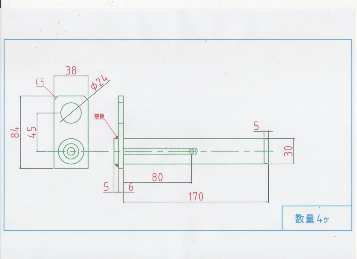 - NO730 Φ30用 溶接ツバ下170mm グリス穴付きバケットピン 4本セット