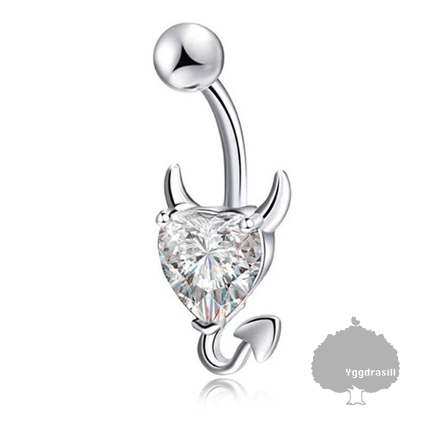 - YGG★ハート×デビルモチーフ ボディピアス ラインストーンシルバー×クリア クリア へそピ