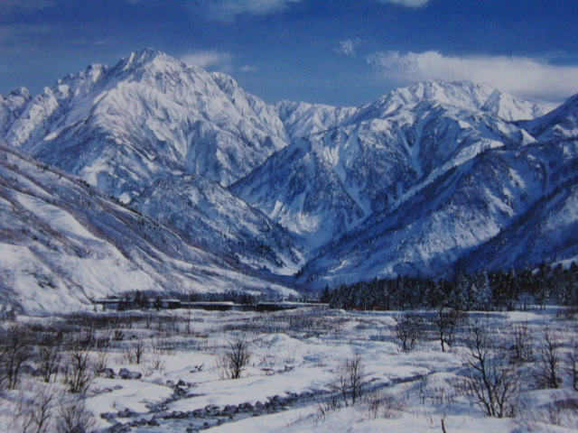 - 黒沢信男、【山河待春(剱岳と早月川)】、希少な額装用画集より、新品額装付、状態良好、送料込み