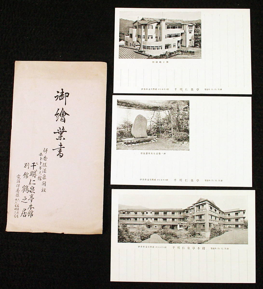 - 明治、大正、昭和前期頃の絵葉書 伊香保温泉 ホトトギス館 千明仁泉亭 御絵葉書三枚