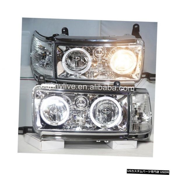 - 輸入カーパーツ トヨタプラド4500 LC80 FJ80 LEDエンジェルアイズヘッドライト1990-1997シルバーカラー F