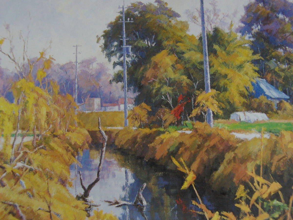 - 根岸富夫、〈水辺暖日〉、希少画集画、高級新品額・額装付、状態良好、送料無料