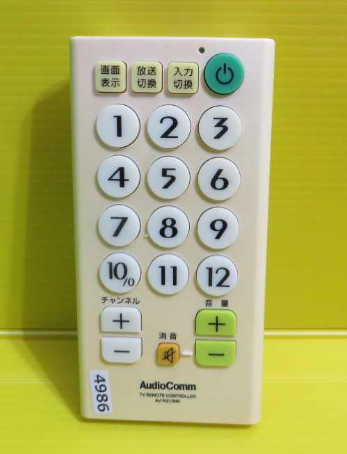 > 即発送!AU-4986■AudioComm TVリモコン OHM オーム電機 各社共通 シンプルTVリモコン AV-R210NK ■ 動作品 保証1か月