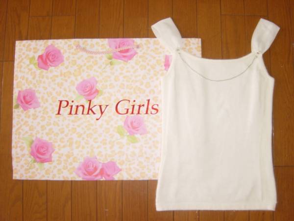 - 新品ピンキーガールズ★ネックレス付き★アンゴラ シフォン袖ニット白ホワイト