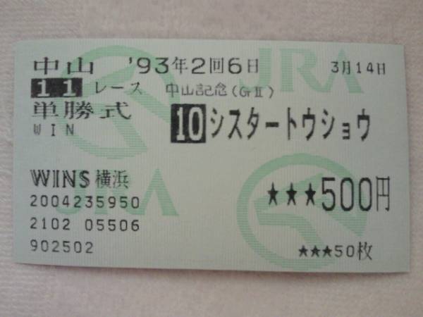 - 1993年☆中山記念☆シスタートウショウ単勝馬券