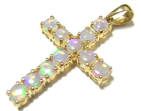 - 14K 天然オパール クロスペンダントトップ 十字架 14金イエローゴールド