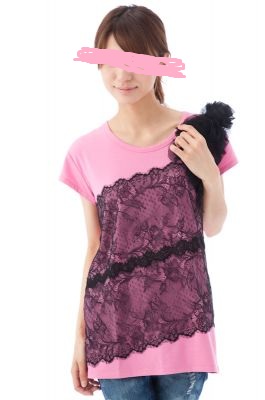 - タグ付き未使用 デコラTシャツ☆ピンク×黒☆レース・コサージュ