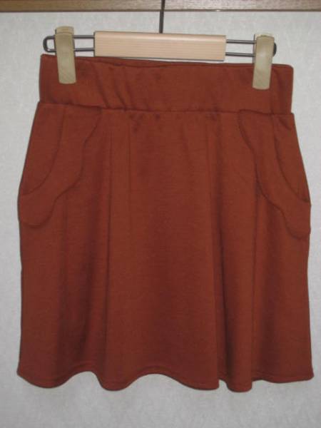 - 新品◆可愛い波型カットポケット付レンガ色ミニ丈スカート.XS