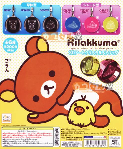- リラックマ3Dアートクリスタルストラップ フルコンプ6種+POP【コリラックマ キイロイトリ シャーレ