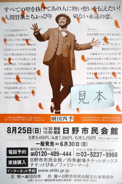 - ★超レア★即決★劇団四季/壁抜け男/石丸幹二/ミュージカルチラシ/日野市民会館