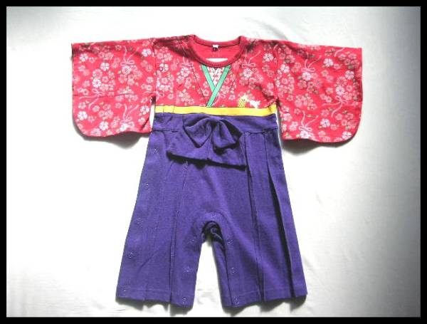 - ★新品☆袴オール*着物*一体型カバーオール*90cm(赤)