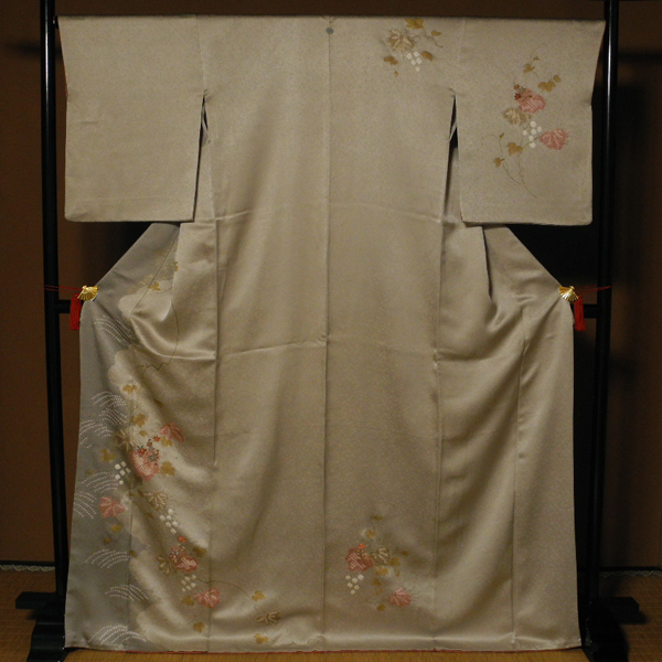 - 正絹 新品同様 襦袢付き 蔦縫い一つ紋 葡萄柄 訪問着 美品 -袷-