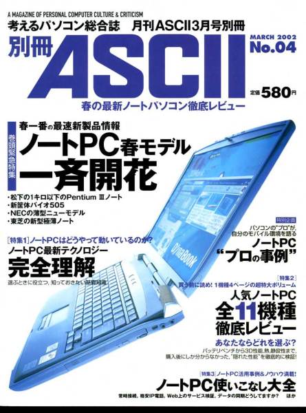 - 別冊ASCIIアスキー 2002年3月号別冊 ノートパソコン徹底レビュー