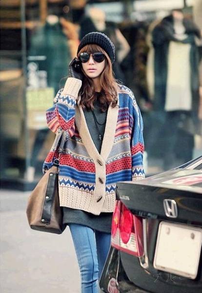 - ◆未使用 ほっこりドルマン カーディガン ブルーレッドホワイト