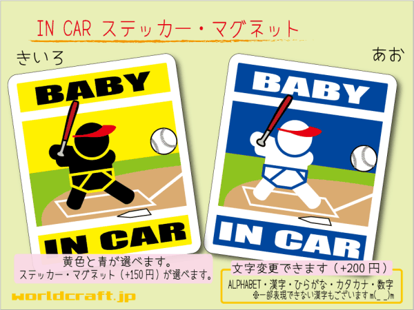 > ■BABY IN CARステッカーソフトボールバッター! 1枚 色・マグネット選択可■赤ちゃんが乗ってます かわいい耐水シール ベビー 車に☆