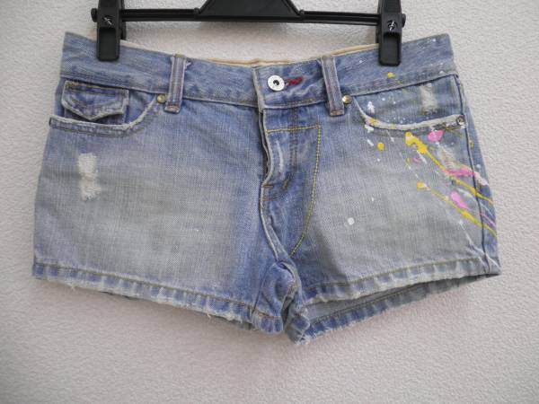 - 女性用 Imagination デニム ショートパンツ ペンキ ダメージ加工 Sサイズ