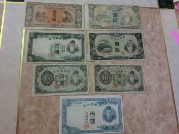 - ★ 満州・朝鮮・中国 拾圓・百圓 7種7枚セット ★ No.316