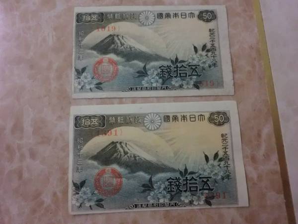 - 裁断エラー品 ★ 政府紙幣50銭 富士桜50銭 2枚セット ★ No.69