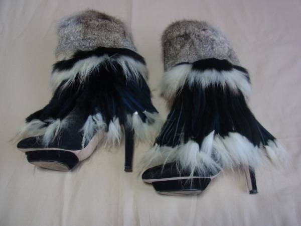 - 希少! ルシェルブルー ファーフリンジブーツ 36 1/2 USED