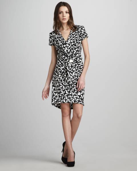 - DVF ダイアンフォンファステンバーグ ワンピース シルク 6 SM 新品 白 黒 新品 ホワイト ブラック ドレープ ゴールド シャープ エレガント