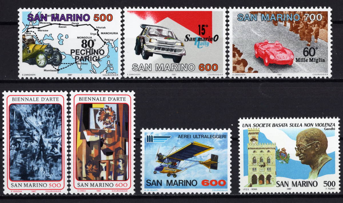 > ★1987年 サンマリノ - 「自動車の運転」3種完+「抽象作品」2種完+「航空機」1種完+「ガンディー」1種完 未使用(MNH)★VF-454