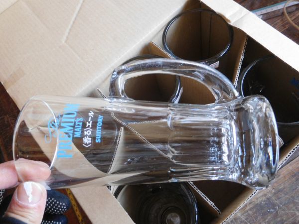 - 昭和レトロ PREMIUM MALT'S SUNTRY サントリー 香る 中 ジョッキ 12x8h19cm 6個セット タンブラーグラス ビール