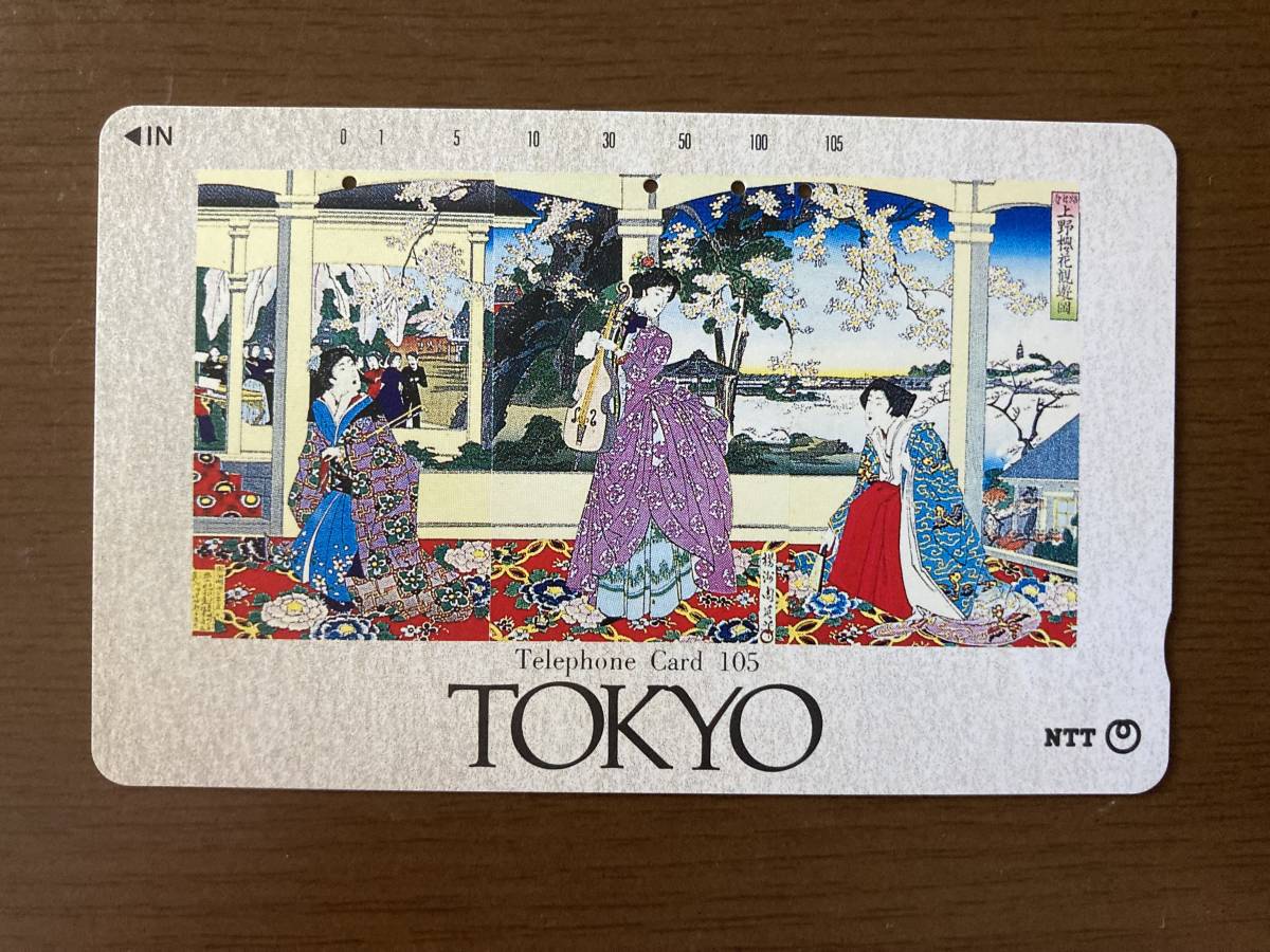 - ★踏舞会 上野櫻花観遊図 東京 TOKYO 上野桜花観遊図 使用済み テレホンカード テレカ 105度数 NTT ミニレター