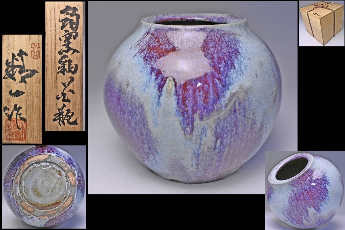 - 田山精一 ★ 鈞窯釉 花瓶 ★ 共箱 ★ 青赤紫の釉景が幻想的で美しい逸品 ★ 笠間焼 ★