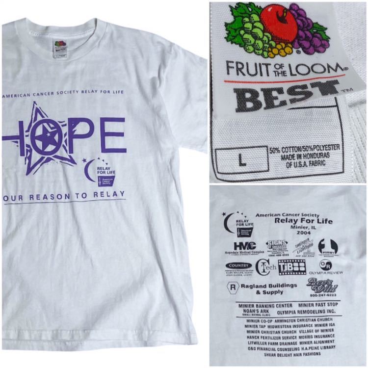 > 2004年製 フルーツオブザルーム ヴィンテージ Tシャツ L 企業ロゴ プリント イベント ホワイト 白 パープル 紫 90’s バック プリント