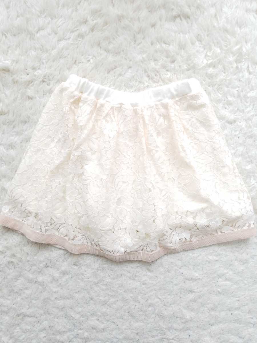 > ☆美品透かし編みレース柄スカート90cmアイボリー白コットン100%ウエストゴム内側ズボン子供服カジュアルキッズフォーマル☆