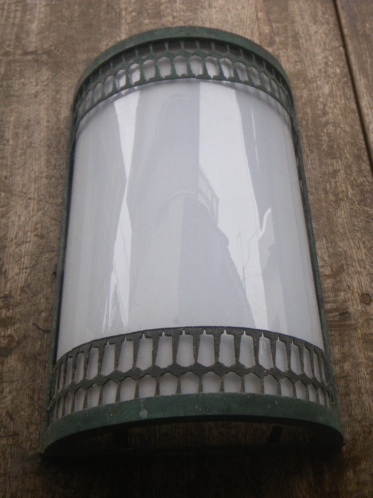 - 銅枠 半円筒型 壁付照明 片面 玄関灯 壁挟灯 レトロ ブロンズフレーム Japanese wall lamp shade 日本製 町家 古民家 古材