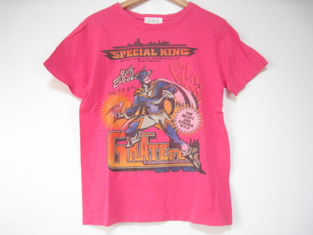 - ARW トップス Tシャツ 半袖 丸首 ピンク プリント フリーサイズ