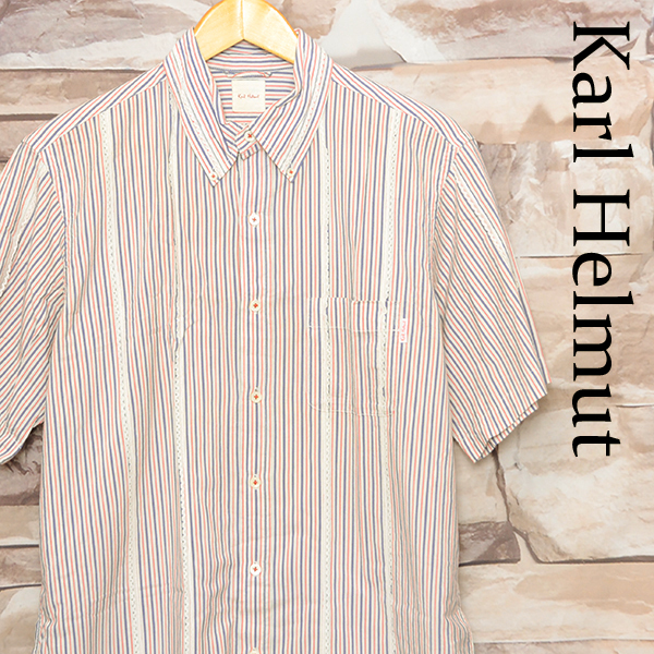 - KS4361 カールヘルム KARL HELMUT アロハ 半袖シャツ L 肩45 ストライプ フリル メール xq