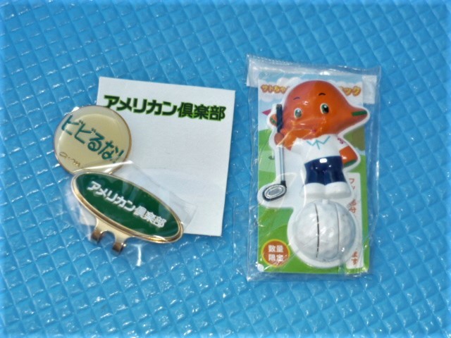 - a★未使用★サトウ製薬 サトちゃんマグネットフックとアメリカン倶楽部 ボールマーカー ビビるな!