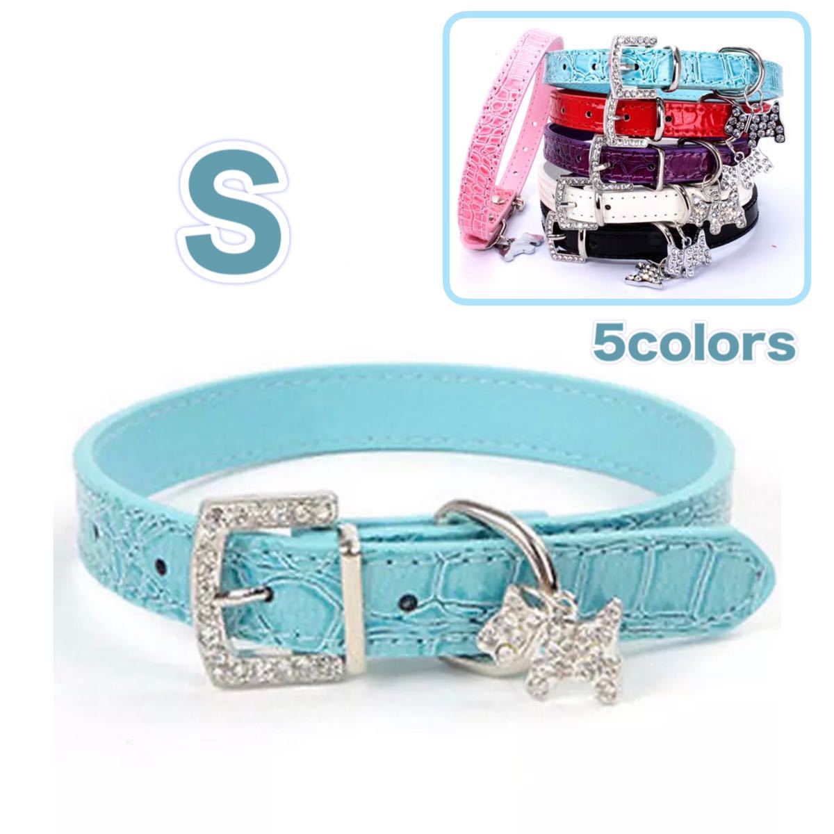 - 犬 首輪 Sサイズ クリスタル 小型犬 犬首輪 おしゃれ かわいい 宝石 ぶw 水色