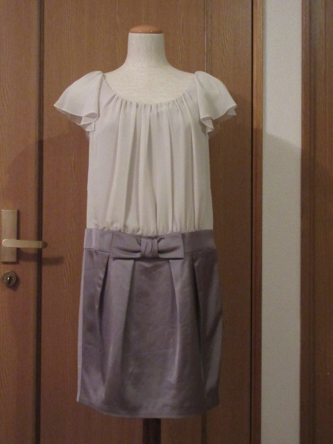 > H)■日本製ブランド品【GRACE CONTINENTAL 】■上下異素材コラボ/リボン■涼しいフレア袖/背ファスナー■フォーマルワンピース■SMサイズ