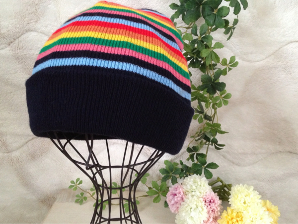 - **カラフルなクレイジーボーダーのニット帽・幼稚園サイズ**