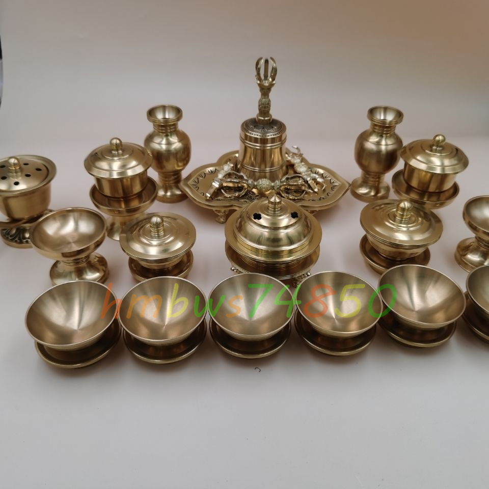 - 極上品 前具 豆型 一面器 金剛鈴 金剛盤 五鈷杵 三鈷杵 独鈷杵 火舎香炉 六器一組 仏器一対 華瓶一対 21点セット