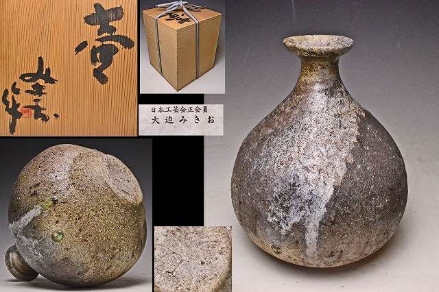 - 大迫みきお ★ 常滑 焼締 壺 ★ 共箱 栞 ★師:江崎一生 ★ 検 竹内公明 常石窯 古常滑 ★