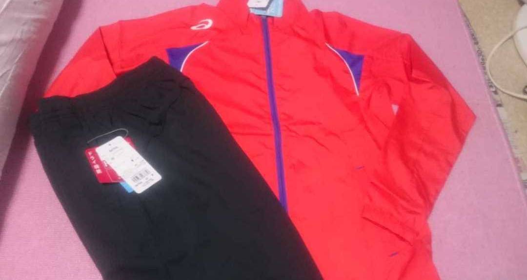 - 《新品》アシックス ウインドジャケット&ハーフパンツ 上下 M 赤×黒