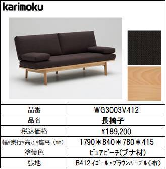 - 【カリモク家具・コンパクトソファー】長椅子幅1790 WG3003V412 ブラウンパープル