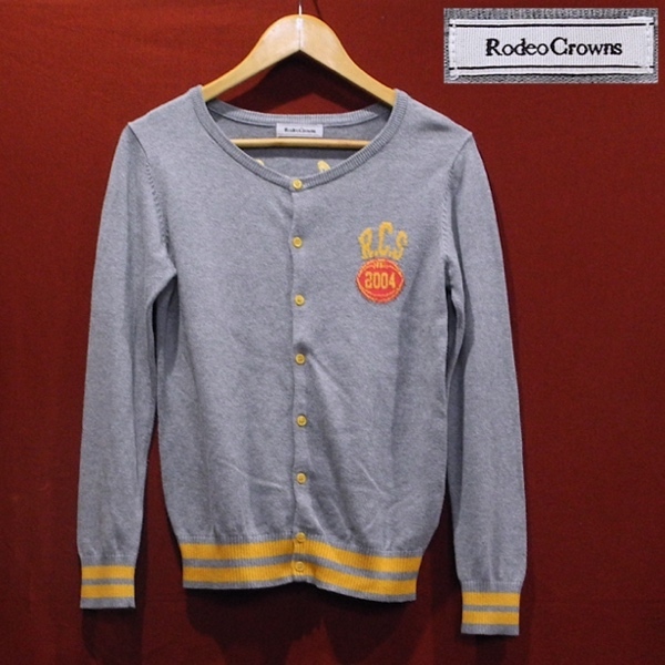 > RODEO CROWNS ロデオクラウンズ ノーカラー 刺繍 ライン コットン ニット カーディガン グレー 2 サイズ