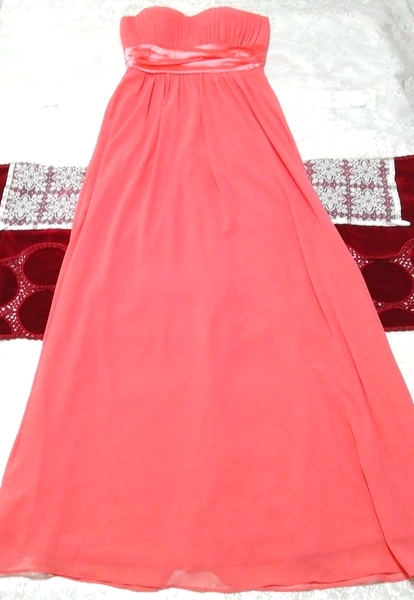 - サーモンピンクシフォン ネグリジェ ワンピースマキシドレス Salmon pink chiffon negligee maxi dress